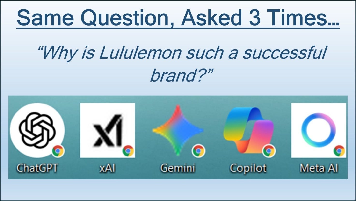 As mentioned in Part 1, I presented the same question to all five leading AI Assistants: ChatGPT, Copilot, Gemini, xAI, and Meta AI. And I did it 3 times in a row. My question was: